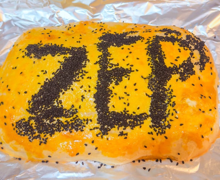 Handcrafted from scratch with a pure, time-honored blend of flour, salt, water, a touch of almond milk, and natural yeast. Brushed with rich egg yolk for a golden sheen and crowned with aromatic black caraway seeds, an authentic, oven-baked artisan creation by Chef Zep.